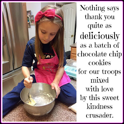 A few years back, we switched gears and decided to encourage our families to work together for a cause so we could send kindness from our kitchens, something our military heroes have coined hugs from home.